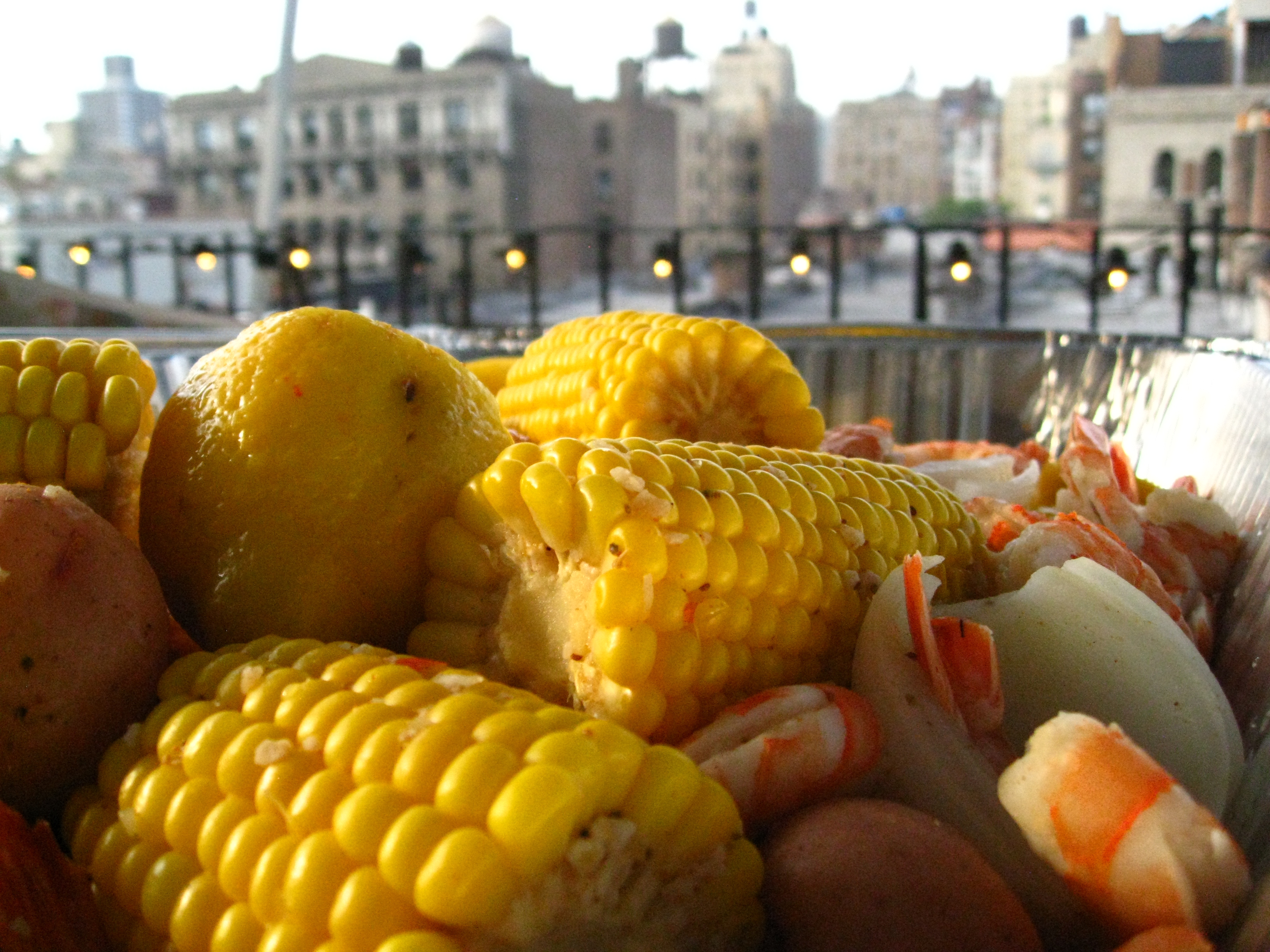 You arrive. You pour yourself a drink. You say Hi to the people you don’t know because Hi is only two letters long and that’s not very difficult. You pour yourself another drink. You say Hi to the person who just arrived late because they’ve never traveled above 14th street. Starter. Salad. Entrée. Dessert. Movie – all outside, overlooking a great view of the northern NY skyline where my rear window residents across the way will be looking back and no doubt be wondering how to get invited!