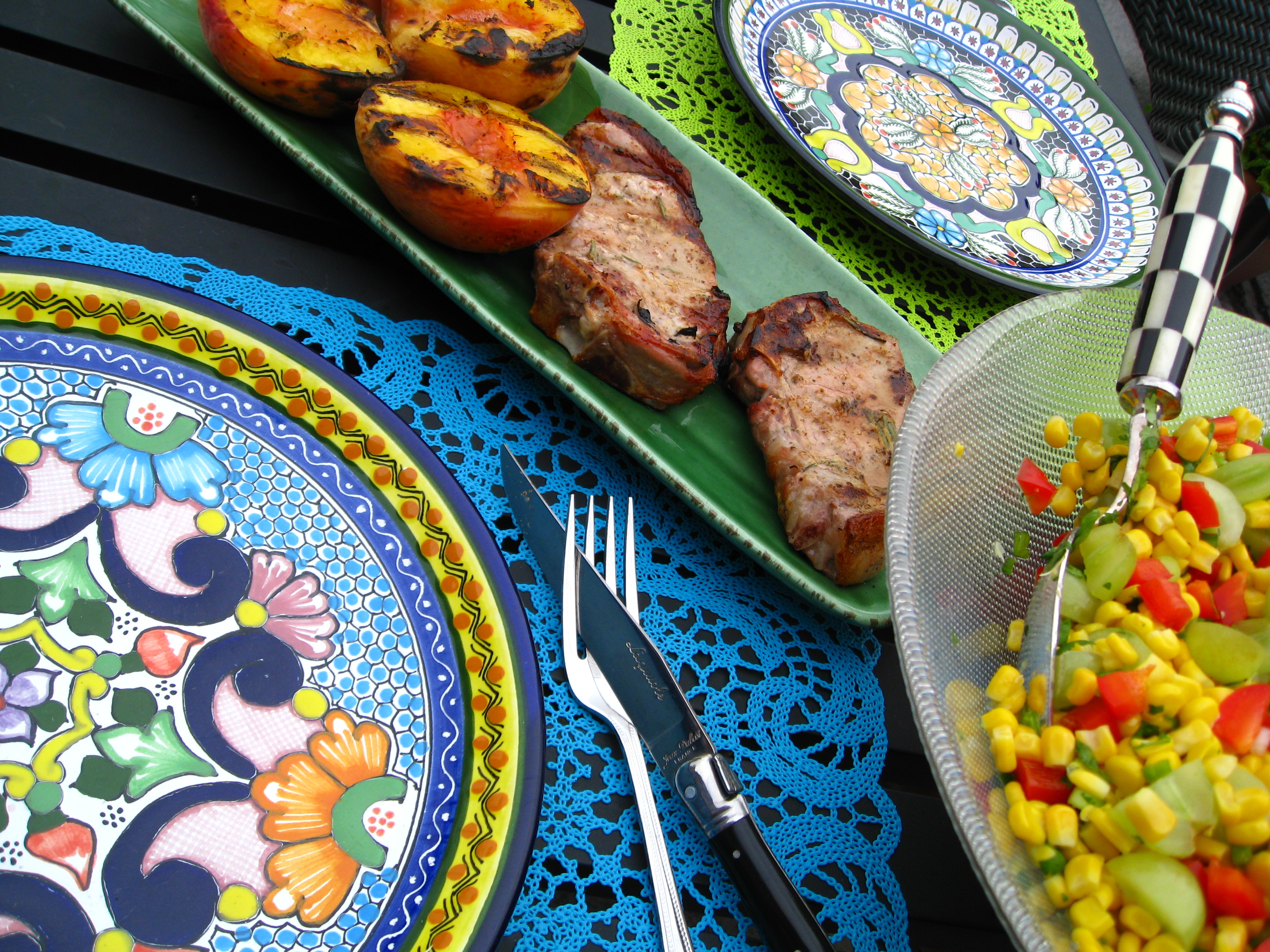 It was a dark and stormy night {almost}. The orange and yellow radar covered the eastern seaboard. The dark, cumulonimbus clouds loomed overhead. And the wind blew….but it DID NOT rain. Even a blind hog finds an acorn now and then. Good thing, because this 8.ate@eight BBQ took two full days to prep and I was fixin’ to have me a party. All those dixie flavors like to hang out over night, so the kitchen was in full swing from the moment the roosters crowed Friday. Here’s the scoop ya’ll…