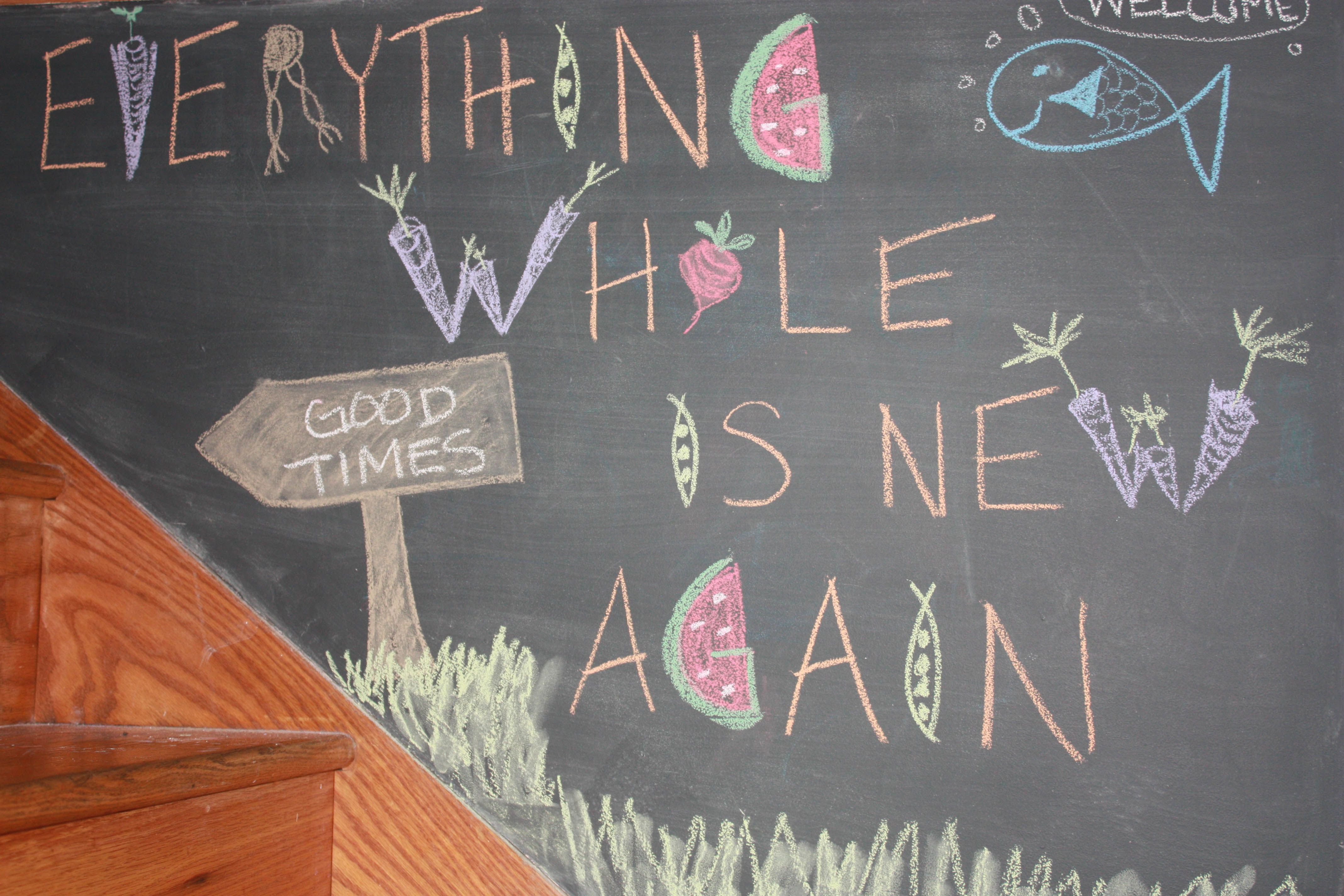 On a lazy Sunday afternoon two friends hatched a plan to trade one’s newly bottled homebrew for the other’s freshly caught stream trout. And they drank and they ate and they said it was good. So good, in fact, that they decided to share these fine things with 8 unsuspecting guests who knew not that they would be asked to eat frog legs and fish eyes, but who simply signed up for a dinner celebrating all whole foods. Everything Whole is New Again was on the calendar and the seats were full.