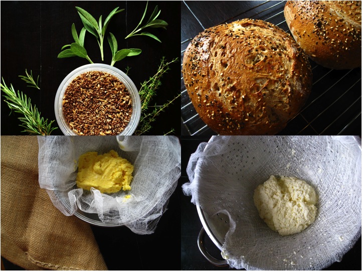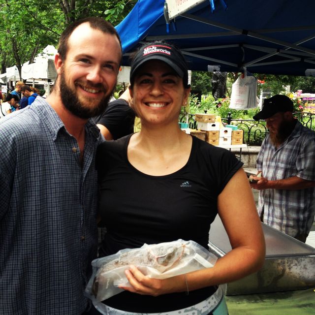 Ok and now it’s going to start to sound ridiculous. While I heated the BBQ to grill our other Keith-caught prize — the main event, the stream-caught wild trout — I brought out the homemade bread {which used spent grain from our beer and sage-rosemary-thyme from the rooftop garden}, served with homemade butter and homemade ricotta. Amazingly, it was the homemade butter that threw people for a loop — seemingly difficult to many, I had to explain it’s really just overwhipped whipped cream. The key is excellent ingredients — I used Keith’s 100% grass-fed heavy cream from his farm, Grazin’ Angus Acres {@Union Square greenmarket on Saturday, @79th st greenmarket on Sunday}, and deliciously flaky Jacobsen Sea Salt from Portland.