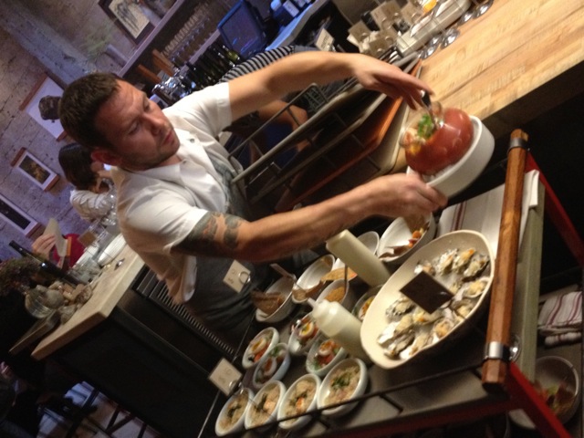 It didn’t take much to be impressed by the clever baby corn on a stick with a lick-able dipping mayo that had me panting for more. But that was just a taste of what was to come with the Sweetbread & Calvados and Lamb Neck & Rye pairing boards. The lusciously tender sweetbreads with a perfectly crispy outer edge were served with raisins, caramelized fennel, capers and delightfully etched glass of Drouin Calvados.  It was rich, sweet, salty and perfect. Sadly I was sharing with a table of other hungry hounds, but I could have easily devoured the entire dish on my own. The Lamb Neck & Rye competed for a second fav — served with anchovy relish, cucumber and a mini preakness cocktail — it too showcased the brilliant appeal of hitting on all your tastebuds.
