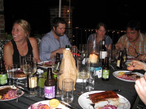 Thanks to Keith Gibson for wading through the stream and ponds to put dinner on the table. And for also raising amazing grass-fed everything that makes everything taste the way nature intended. Thanks to Ryan and Angela for helping with the brew process and storing a whole lotta beer at your apartment. Thanks to Allison and Kristin for all the help clearing our many empty dishes — and washing them {best roommates ever}! Thanks to Kristin for also snapping some pics while I was worrying about the rain. And I of course want to thank everyone who grabbed a seat at the table — it was lovely to have you all!