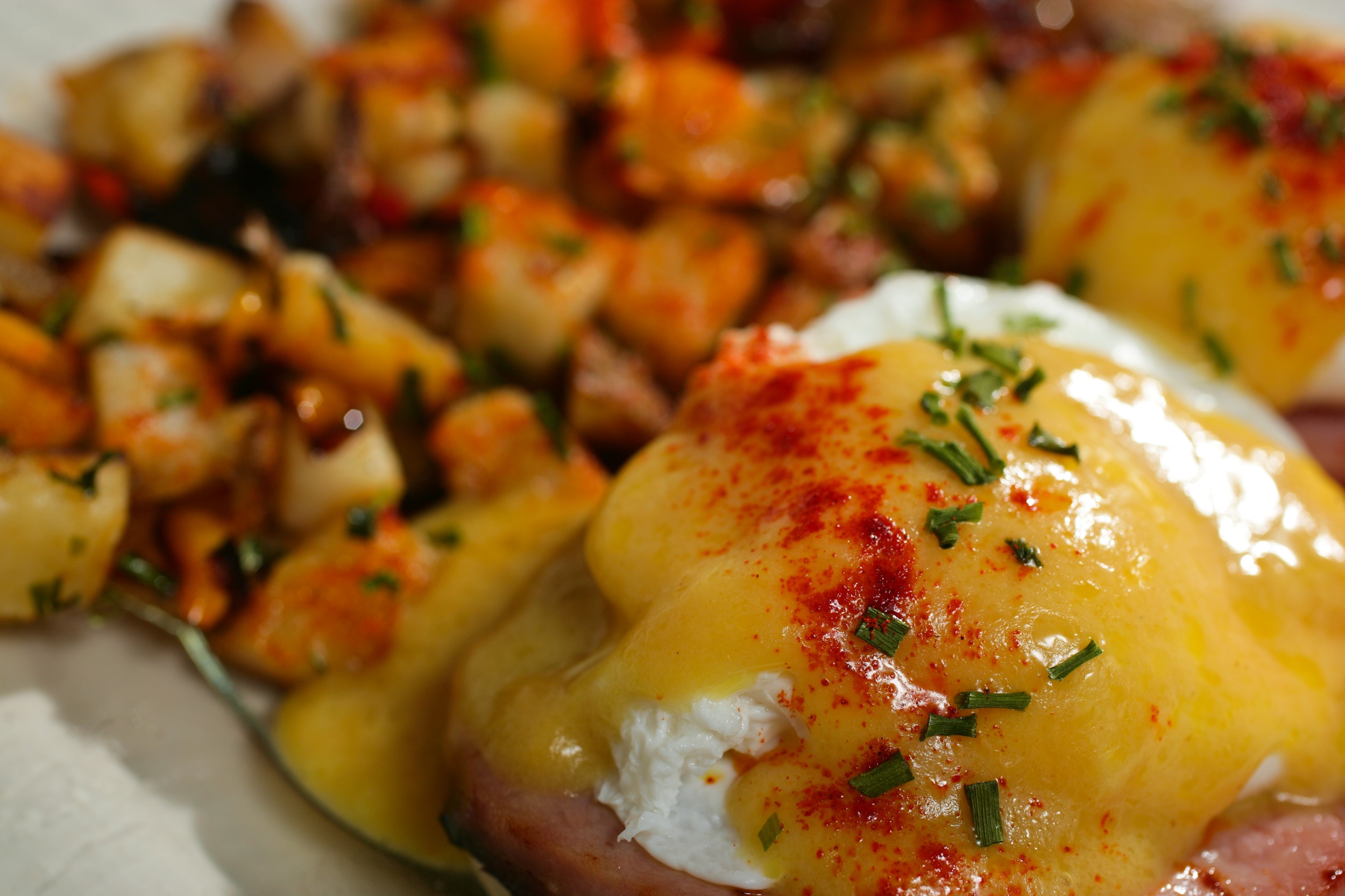 - Whisk two eggs with salt and pepper and add to the pan once the scrapple is crisp.