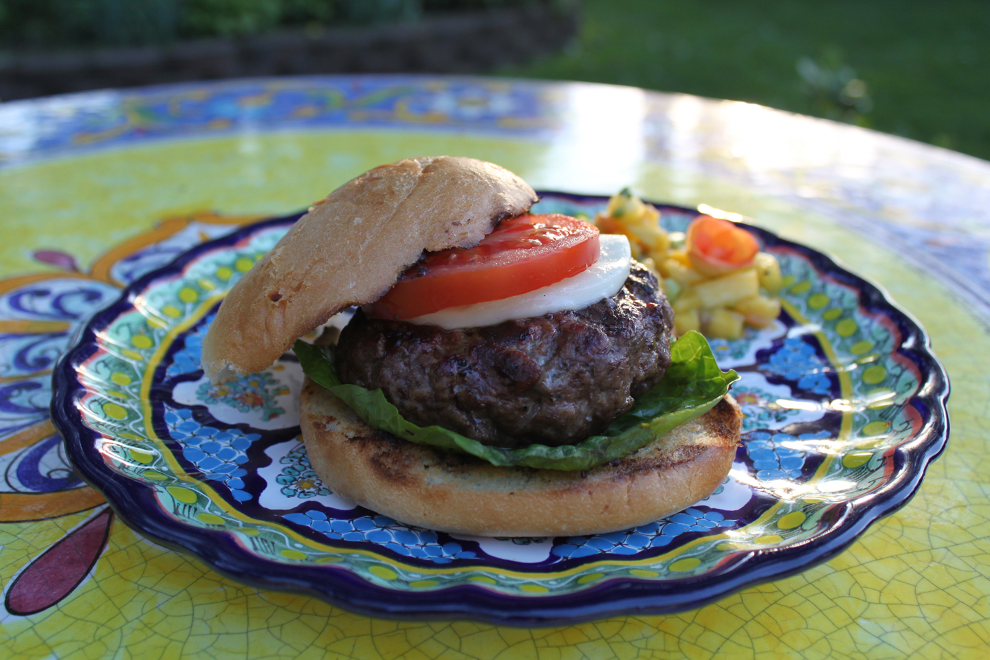 This delicious burger would also would go great with a side or topping of Tropical Fruit & Avocado Salsa or Creole Roasted Fresh Corn-Tomato Salsa.