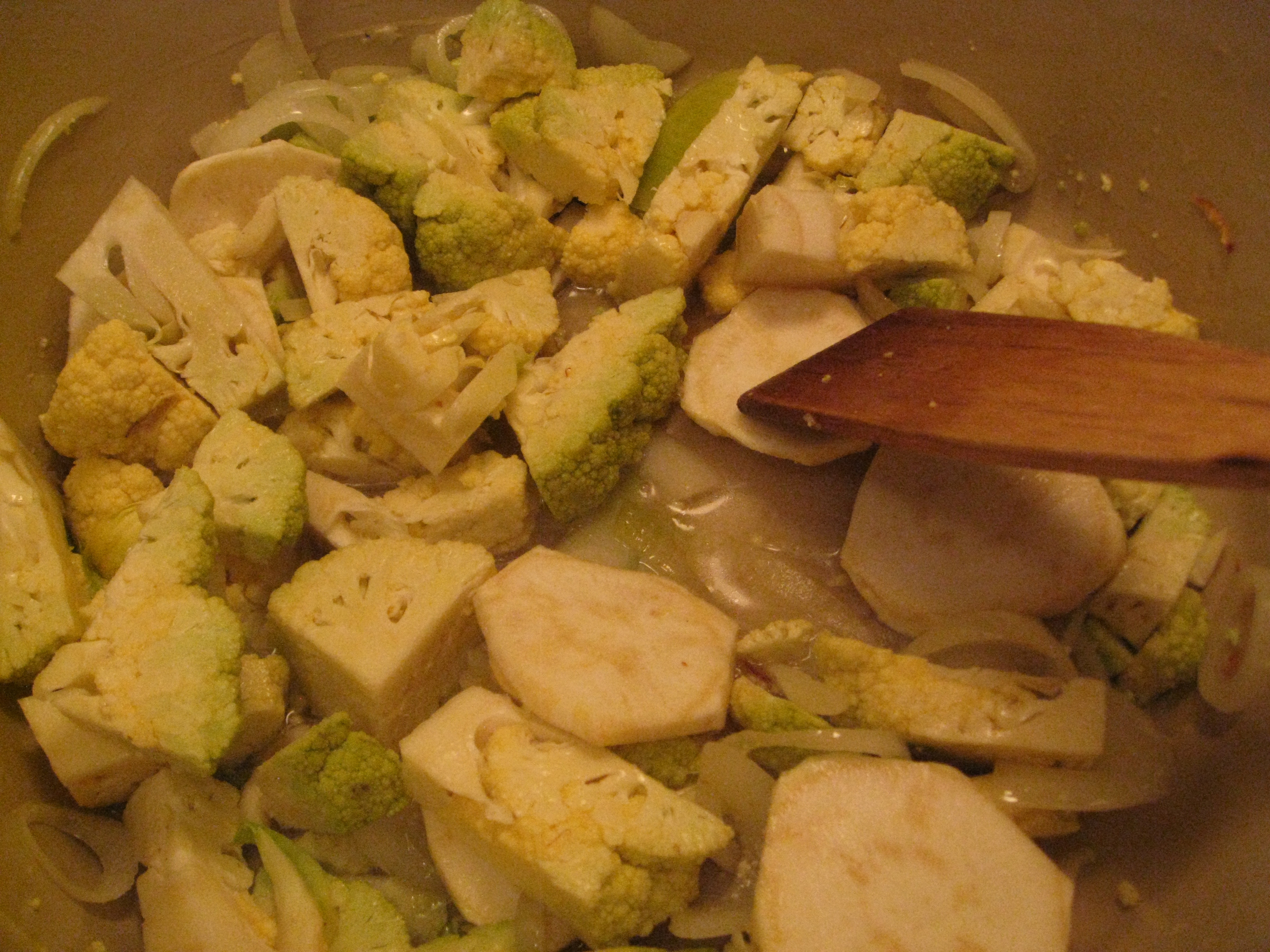 - Once tender enough that a paring knife would easily pierce the potato {about 5 minutes}, drain the goods and throw them back into the empty pot. Add a generous drizzle of olive oil, coarse gray salt and one of my favorite sweet chili spices, Izak N.37 from La Boîte {or mix equal amounts 1/3 tsp each of sweet chili pepper, cumin, garlic powder}.
