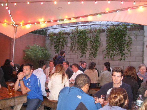 Looking for a local watering hole where the beer selection and fresh air is abundant? Mission accomplished at Mission Dolores, the new beer garden in Park Slope that recently opened its doors and the roof. What was once a run down auto repair shop, has since gone through its own renovation from the two brothers behind Cobble Hill’s Bar Great Harry. The simplicity of the cement floors and small wood tables and stools, makes it easy to focus on the main draw of the 21-tap beer selection — everything from premium local brews to a number of well-known international selections {two of my favorites: Aventinus and Hitachino made the list}.