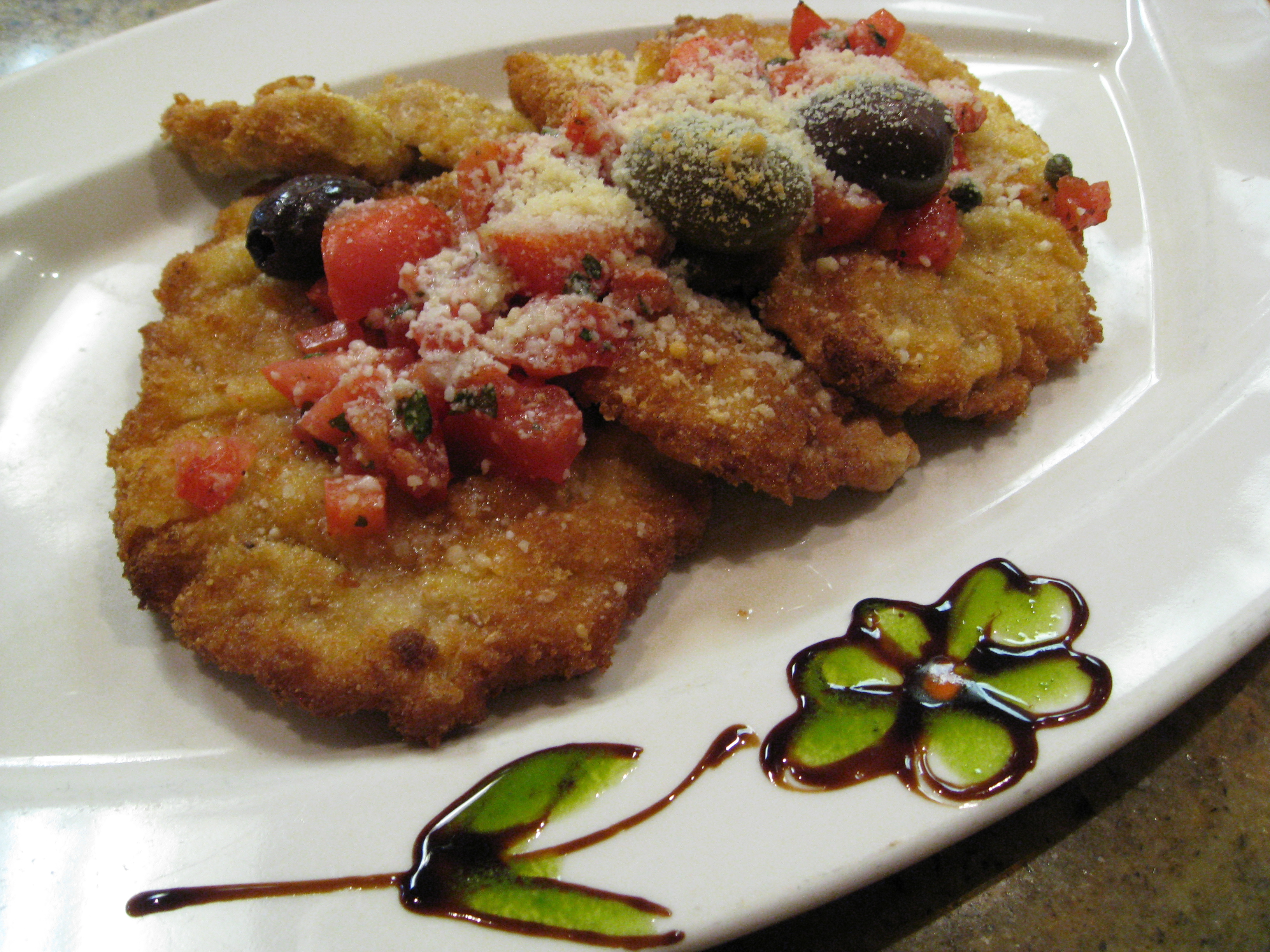 For my entree, the Veal Pizzaiola topped with fresh tomatoes, herbs, olives capers and parmigiana reggiano was calling my name. The meal itself, was a thing of beauty, but what added to the artful presentation of Italian flavors was a crafty little plate painting drawn using oils and vinegar in the shape of a flower.