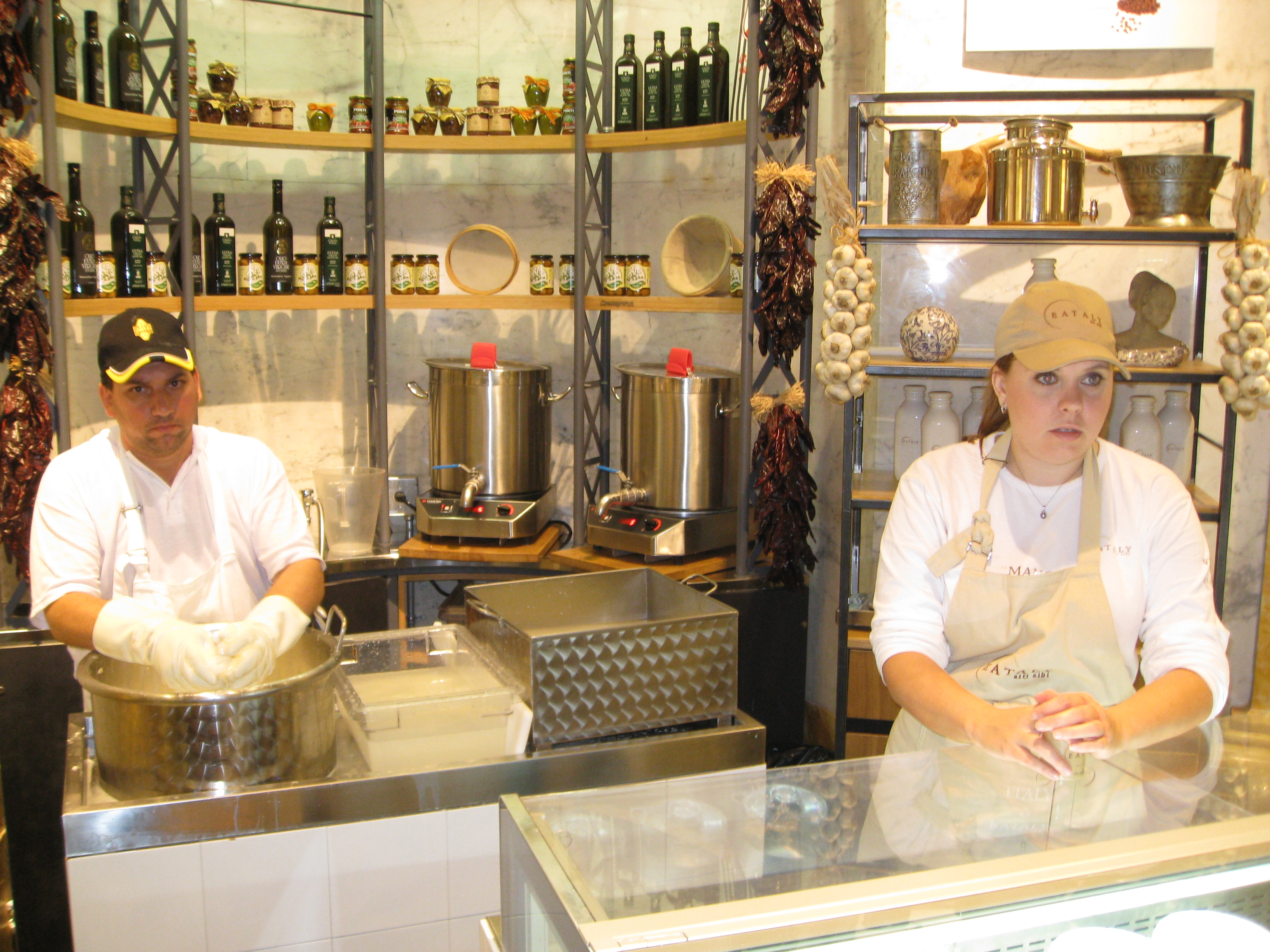 But after you’ve sampled a taste of Italy, make your way to my favorite part of the store, the salumi and formaggi section. Here, the best of Italian food craft is married with locally-sourced ingredients, to bring you fresh cuts of meat and cheeses, including handmade mozzarella, literally made before your very eyes. If you chat with Sal for a bit, he might even share some warm mozz right from the pot!