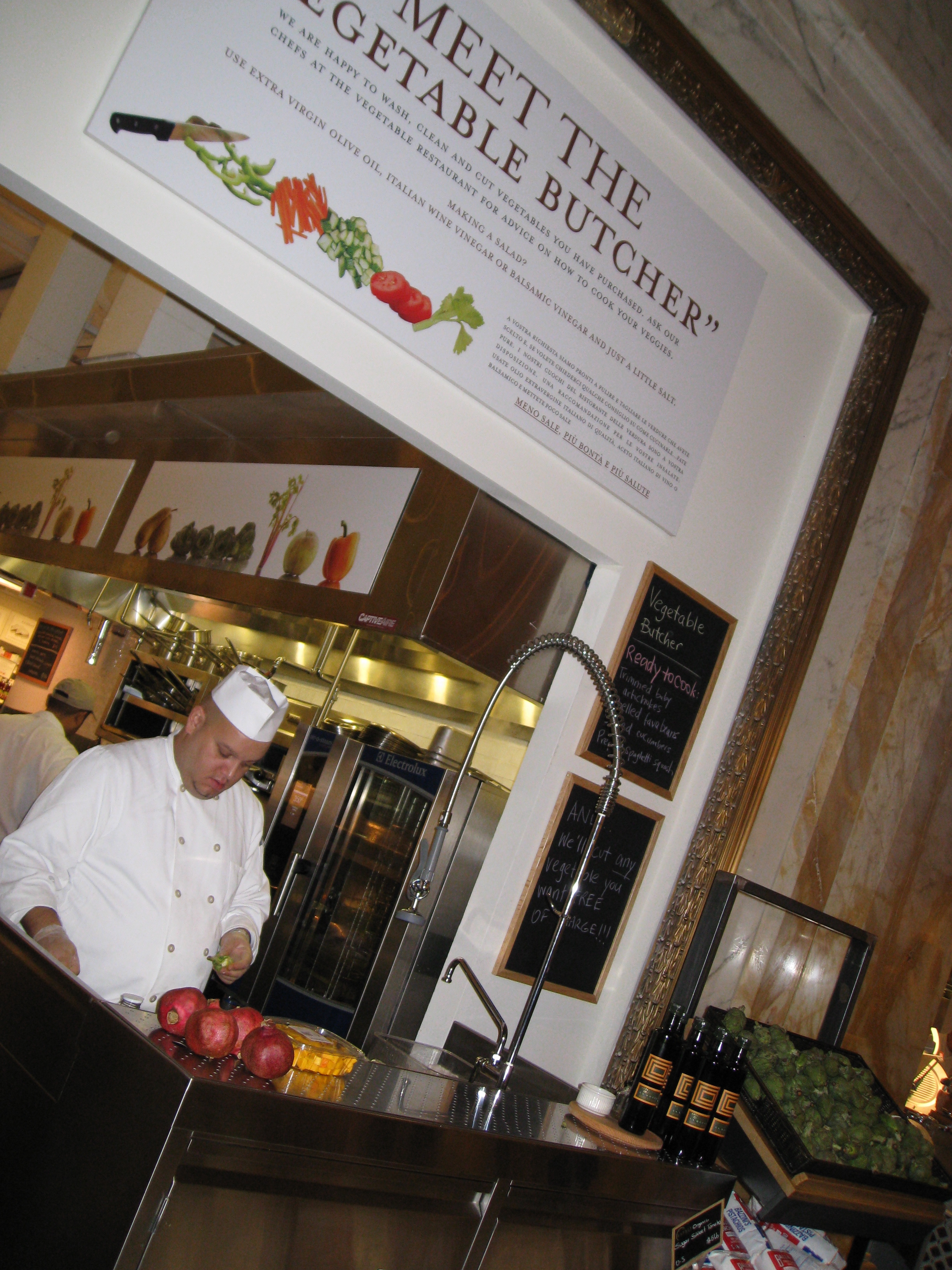Grab some fresh produce, which I thought all looked very nice and was reasonably priced. If you’re not one who wields a knife with ease, then pay a visit to the brilliant vegetable butcher, who will wash, clean and prep your veg in any way you would like. Why oh why has no one done this before?!?