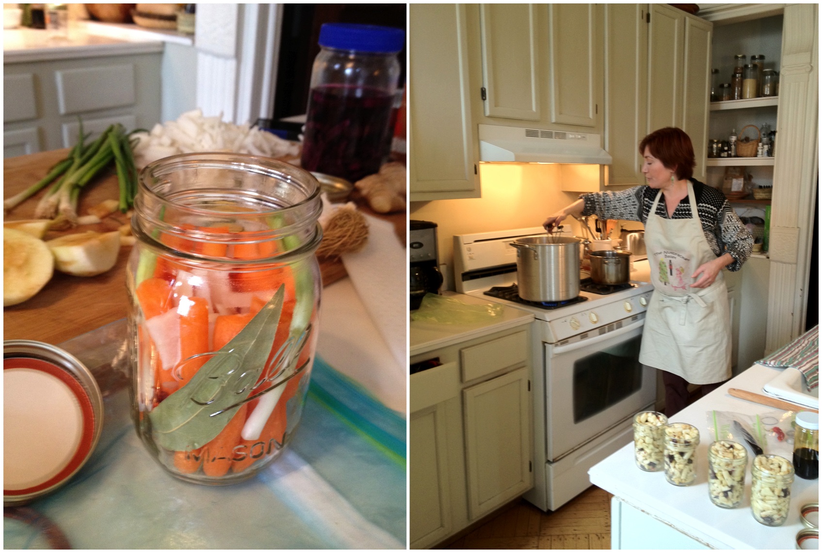 We spent two hours learning the difference between several food preservation techniques and rules to live by to safely avoid the dreaded botulism {good news, botulism can’t happen when you ferment so keep reading}. Leda showed us a quick hot water bath pickle to distinguish between that jarring method and the lacto-fermentation approach which was going to be our main focus. I’ll skip over the details of the pickle since I covered it in my Happy Girl Pickle Post {read more here}. Jumping to fermentation, just know one thing: this is a quick and easy project that can be done in under 30 minutes, so don’t be scared off by big long words or the idea that jarring is a day-long commitment. Get involved!