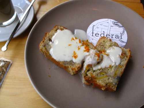 Federal {Australian Farm-Fresh & Great Breakfast | Poble Sec} Poble Sec is a new up and coming area, and is home to some of the best new restaurants {Ferran Adria of El Builli fame just opened Tickets and 41º here}. Federal is Australian-owned and serves an amazing full breakfast, which is hard to find in Boccadillo-loving Barcelona. The kitchen closes at 4pm on Sunday and there is always a wait, so plan to get there no later than 3pm. I had the most amazing coconut-banana bread w/ honey labne and a free-range egg with a yolk the color of a setting sun. Amazing.