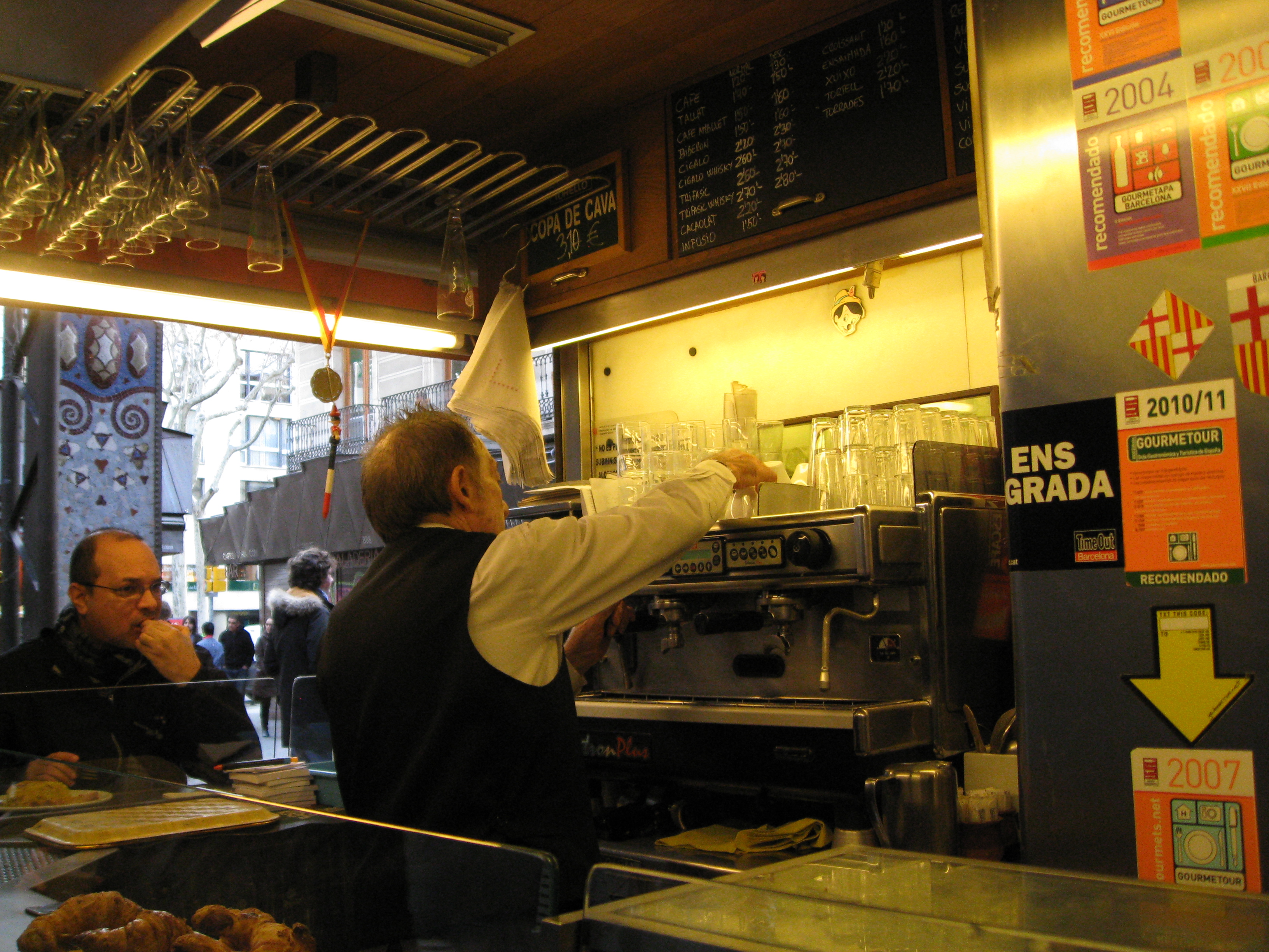 Must do. A fantastic cava and tapas bar, serving the bubbly in ‘50s style champagne glasses. Hang out with locals standing at the bar for a few bites before going out. Family-owned since 1929, it has both good energy and an historical air that makes trying a bite of this and a bite of that, that much more enjoyable. Its bright fluorescent lighting gives it the feel of an old-school NYC Jewish deli, serving up great food in an unpretentious setting. And since the Catalonians like to come and go frequently, the people watching never stops.