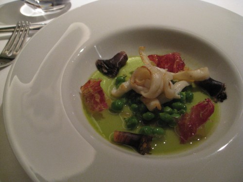 ABaC: Maresme peas royal with Iberian consommé and citrics, barnacles and sea cucumber