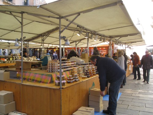 Go early (9am) to watch all the purveyors set up each nut, chocolate and fig, to perfectly present their bounty. The quiet of the early morning hour is spectacular in contrast to the midday buzz — the best way to take it all in.